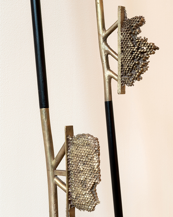 Kings, Queens, and Other States of Mind (2022) brought together works in various media as a spatial installation in a former mourning chapel. The narrative is shaped by re-visioned visual worlds that articulate the humanist ideal, engaging with the challenges arising from a post-anthropocentric worldview. The exhibition appropriates visual references from Greek antiquity, considered the foundation of humanism. This imagery, anchored in our collective memory, encounters historic and contemporary images of society, power, and spirituality. Through bronze and concrete sculptures that evoke non-human elements from nature, Leonid Keller invites viewers to perceive thr human in relation to the non-human and to conceive of them as inseparable.