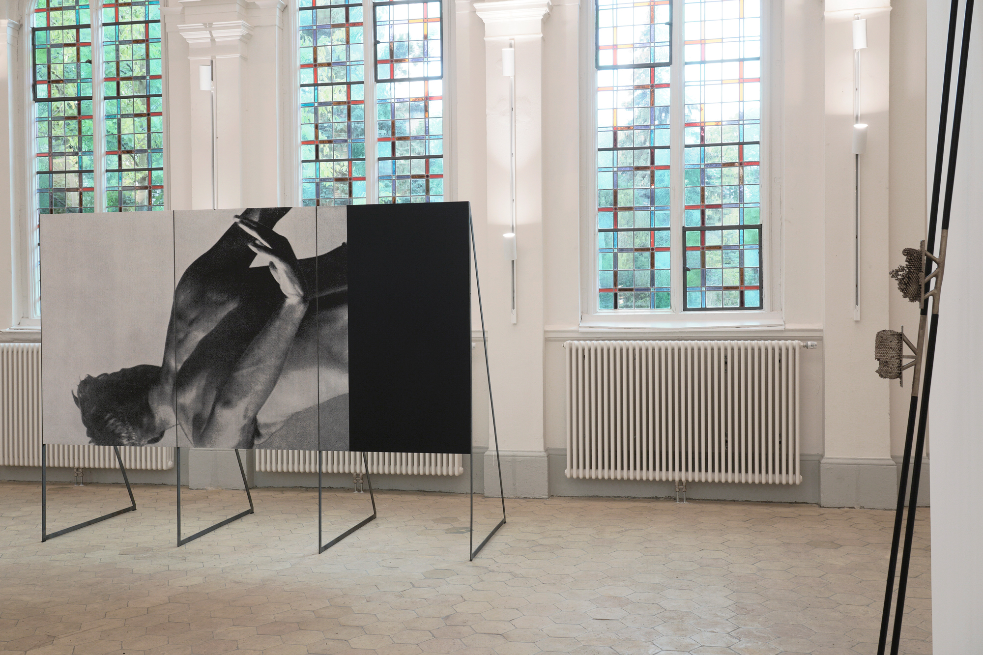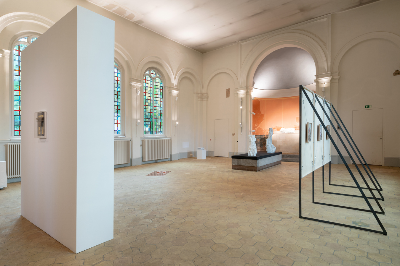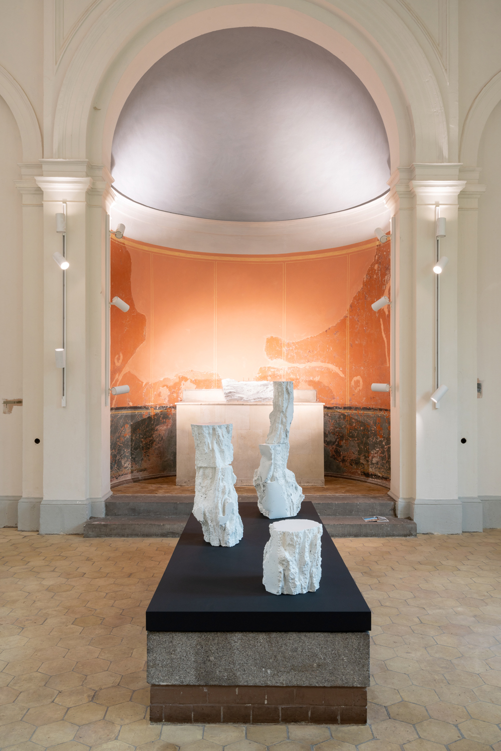 Kings, Queens, And Other States Of Mind (2022) brings together works in various media as a spatial installation in a former mourning chapel. The narrative is shaped by re-visioned visual worlds that articulate the humanist ideal, engaging with the challenges arising from a post-anthropocentric worldview. The exhibition appropriates visual references from Greek antiquity, considered the foundation of humanism. This imagery, anchored in our collective memory, encounters historic and contemporary images of society, power, and spirituality. Through bronze and concrete sculptures that evoke non-human elements from nature, Leonid Keller invites viewers to perceive thr human in relation to the non-human and to conceive of them as inseparable.