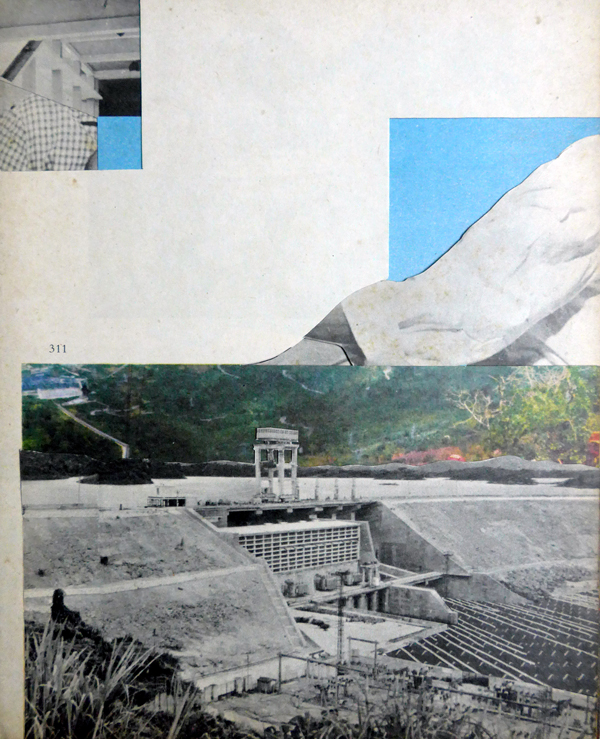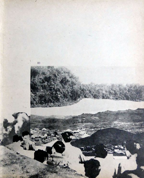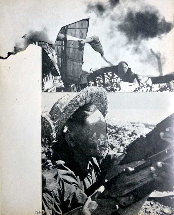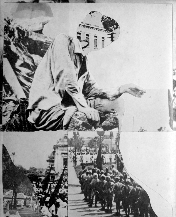 Red Book is based on the widely distributed book DUOI LA CO VE VANG CUA DANG a book about the glorious days of Ho Chi Minh‘s Communist Party of Vietnam. It was published in 1976, just a year after the end of the Vietnam war. The book is bound to chapters, each of which has been deconstructed into a collage that invalidates the propaganda purposes of the book by creating a far removed imagery.