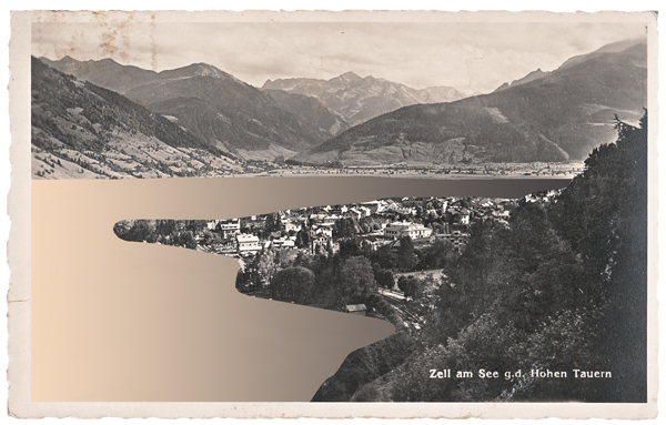 #shapeofalake plays with our perception of color gradients, as they appear in landscape, and puts them in context with popular instagram filters and hashtagging of landscape photography. The installation is composed of a series of sixteen historic postcards and a steel object. Digitally created gradients are applied to significant organic shapes in the postcards. The object, which is inspired by a lake, corresponds in it‘s shape. It is varnished with flip-flop laquer from the car industry. Depending on the viewing angle, it‘s color shifts.