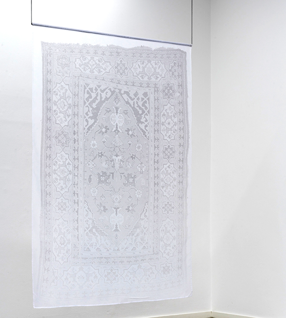 Untitled (Lenin) (2020): In the former Soviet Union , tapestries symbolized prosperity and prestige - genuine wool carpets with Oriental patterns were makers of status for those